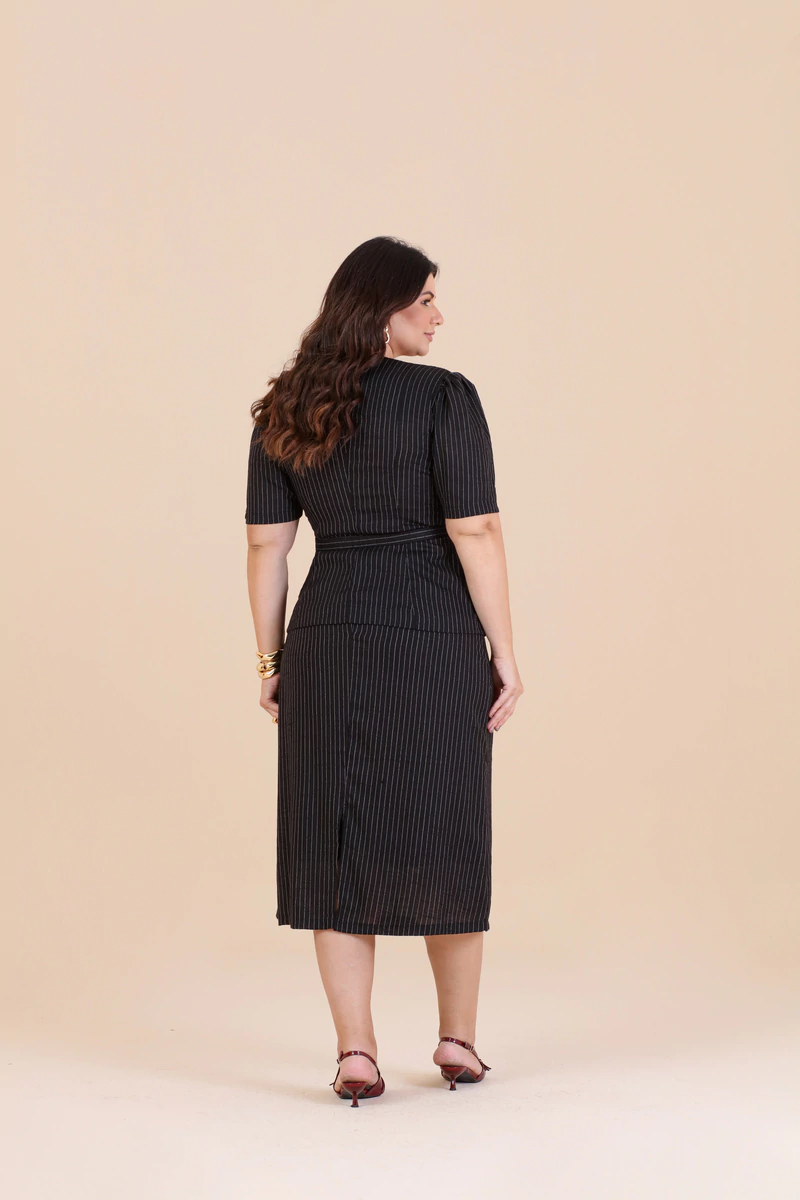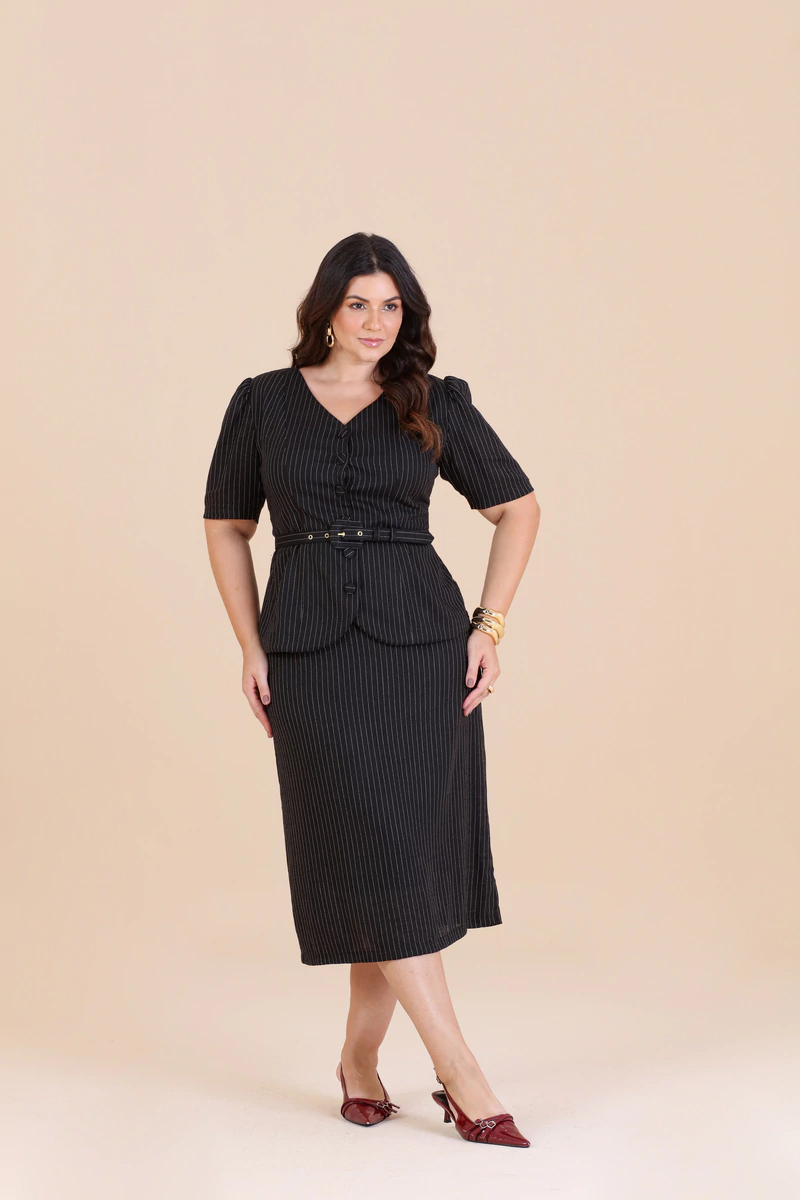 Conjunto Plus Size Hadaza com Saia Midi, Blazer e Cinto – Sofisticação e Versatilidade em Cada Detalhe