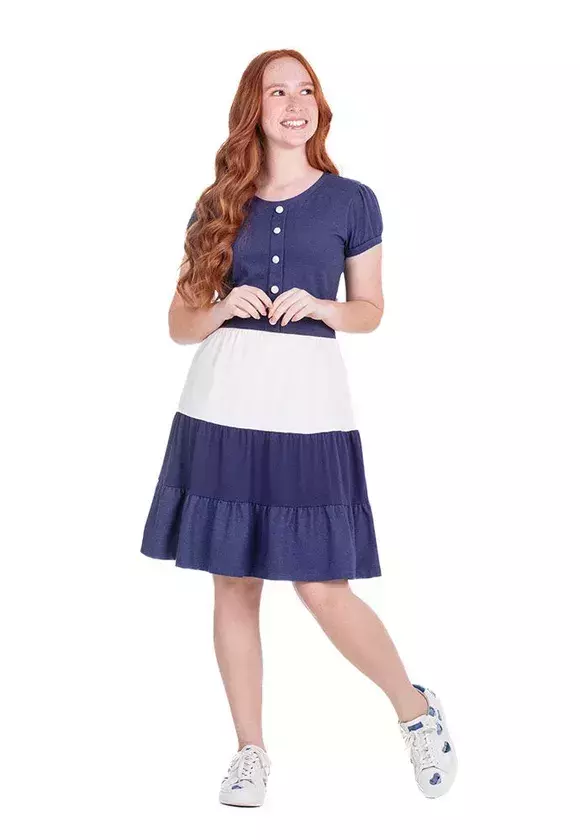O Vestido Blanca combina conforto e estilo em uma peça versátil e charmosa. Confeccionado em mix de malhas – malha lisa de algodão e malha jeans – o modelo oferece toque macio e caimento leve. Possui decote redondo com botões encapados fixos, que adicionam um detalhe delicado ao visual. As mangas curtas têm leve franzido e acabamento em punho, trazendo um toque romântico e feminino. O shape soltinho proporciona liberdade de movimento, e o forro interno garante mais conforto e segurança ao vestir. Uma escolha perfeita para quem busca um look moderno sem abrir mão da praticidade.