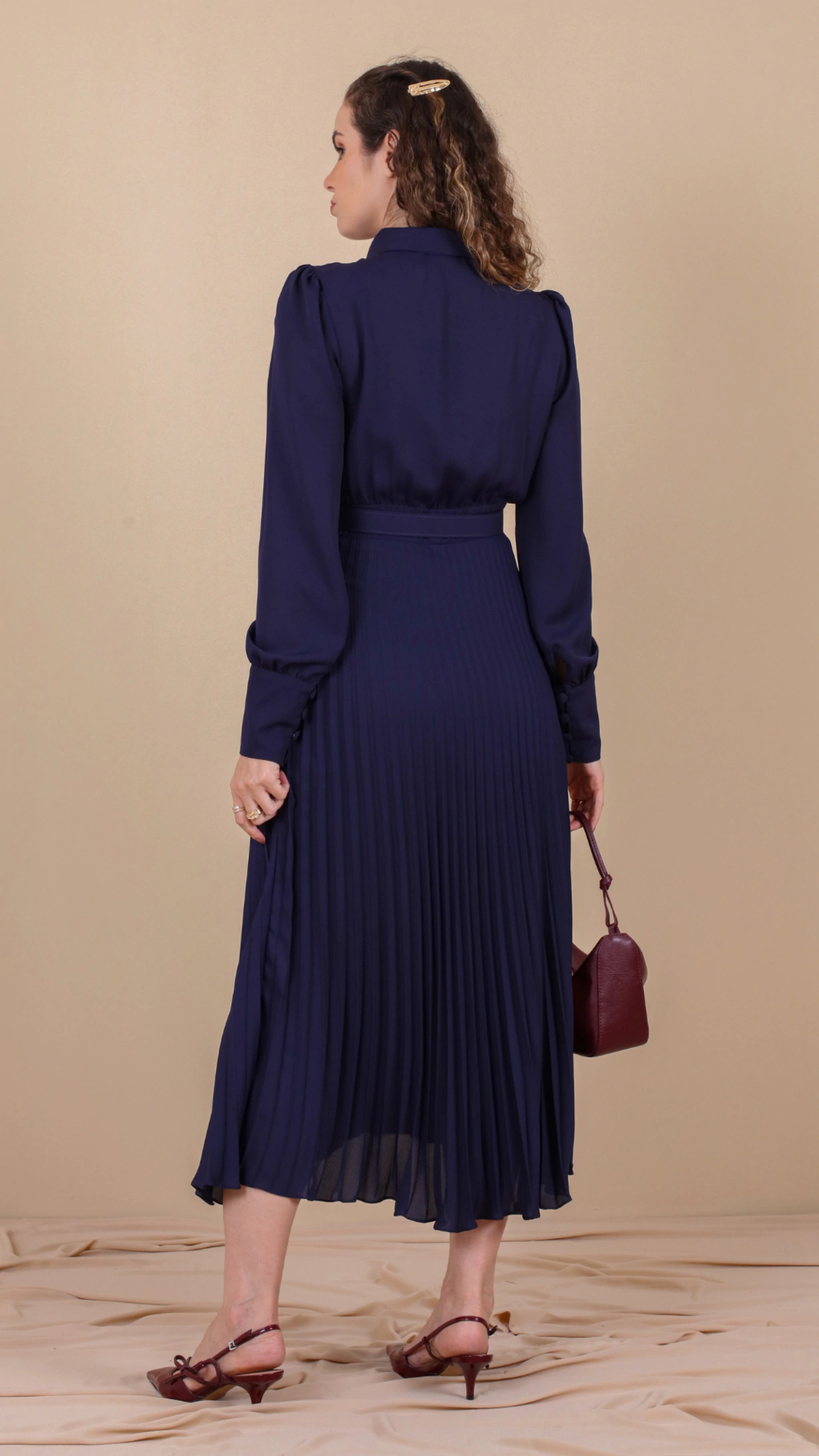 Encante-se com este vestido chemise maxmidi em musseline. A gola e a abotoação frontal funcional oferecem um visual clássico, enquanto a faixa para amarração de laço na gola adiciona um toque romântico. As mangas longas com punho largo e abotoação trazem um estilo elegante. O cós na cintura valoriza a silhueta, e a saia plissada garante um caimento impecável. Com um cinto encapado para completar o look e totalmente forrado para seu conforto.