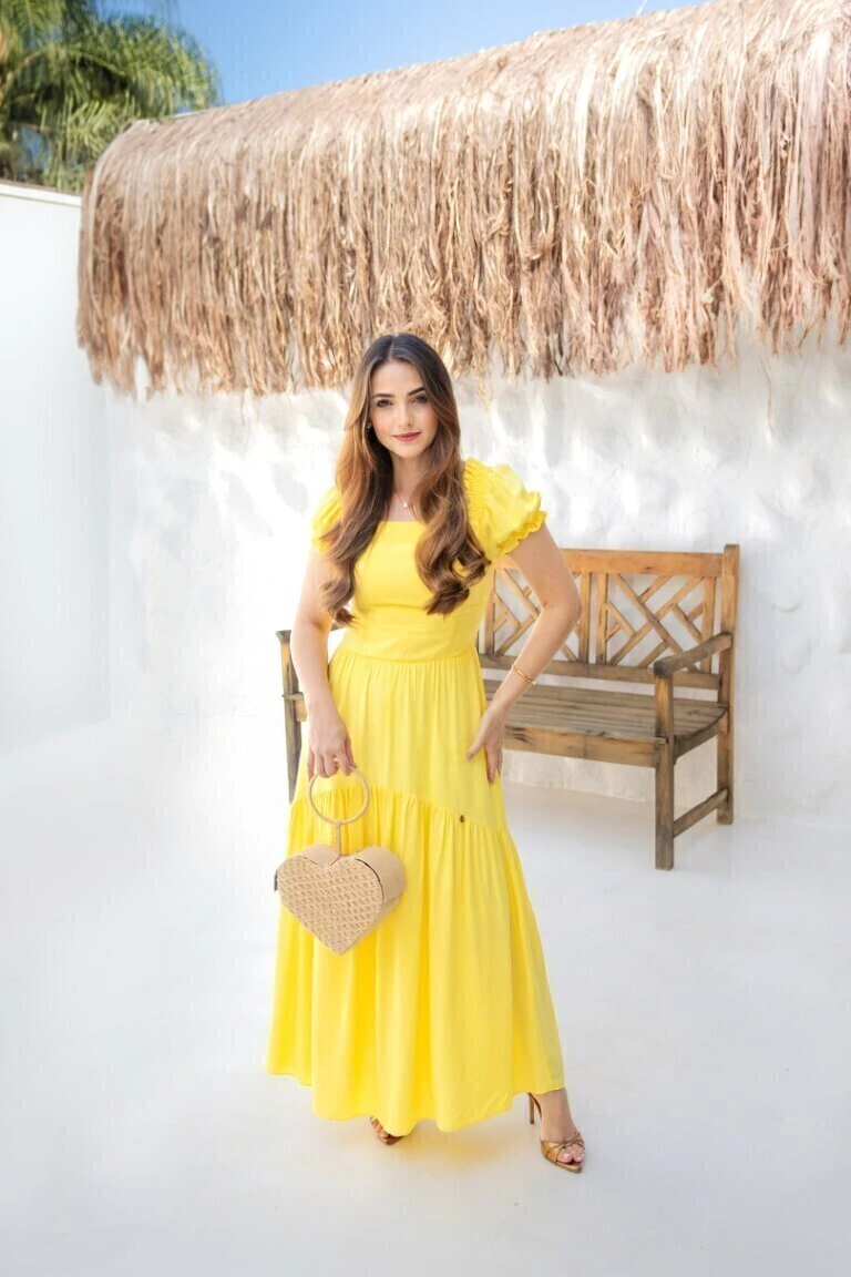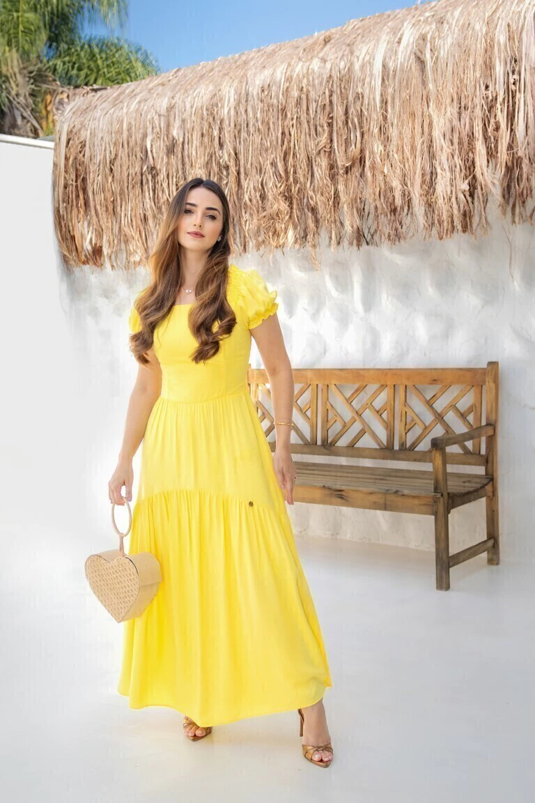 Composição: Viscolinho de alta qualidade. Sinta-se linda e confortável com o Vestido Positano Amarelo da Valentina Sirrah!