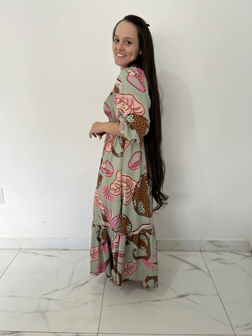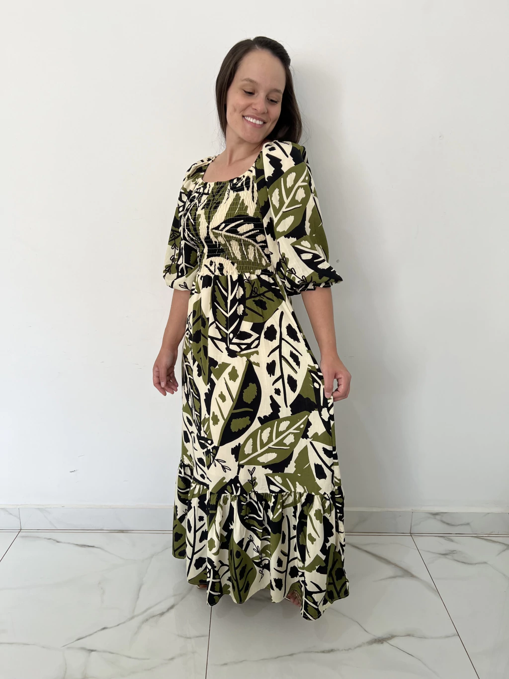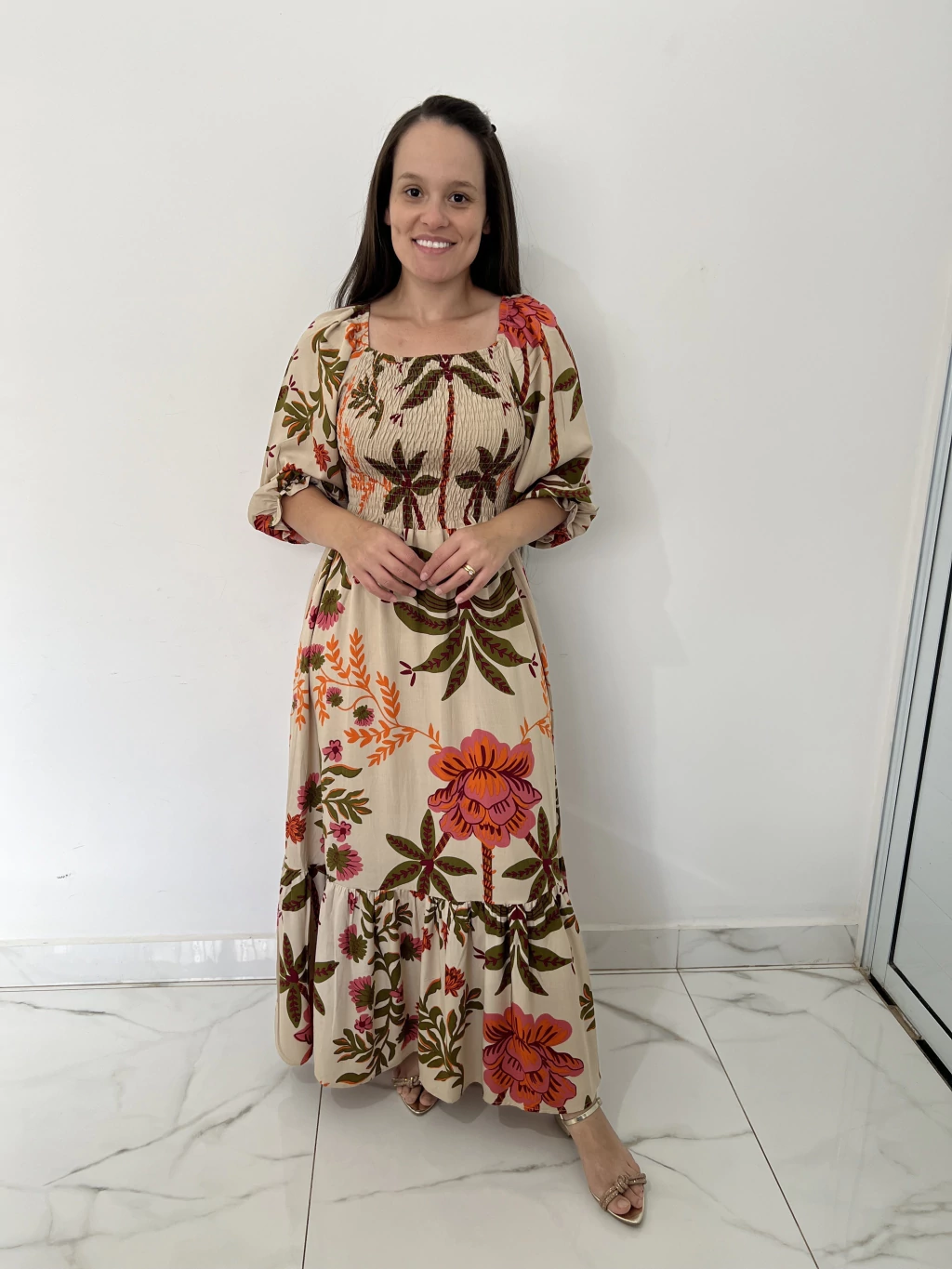 Conforto e estilo definem nosso vestido máxi midi, feito em viscolinho premium. Ele apresenta um elegante decote quadrado, mangas 7/8 com punho franzido e lastéx no corpinho para um ajuste perfeito. O recorte na cintura e o comprimento longo com babado em uma maria completam o design, garantindo um visual fluido e encantador.