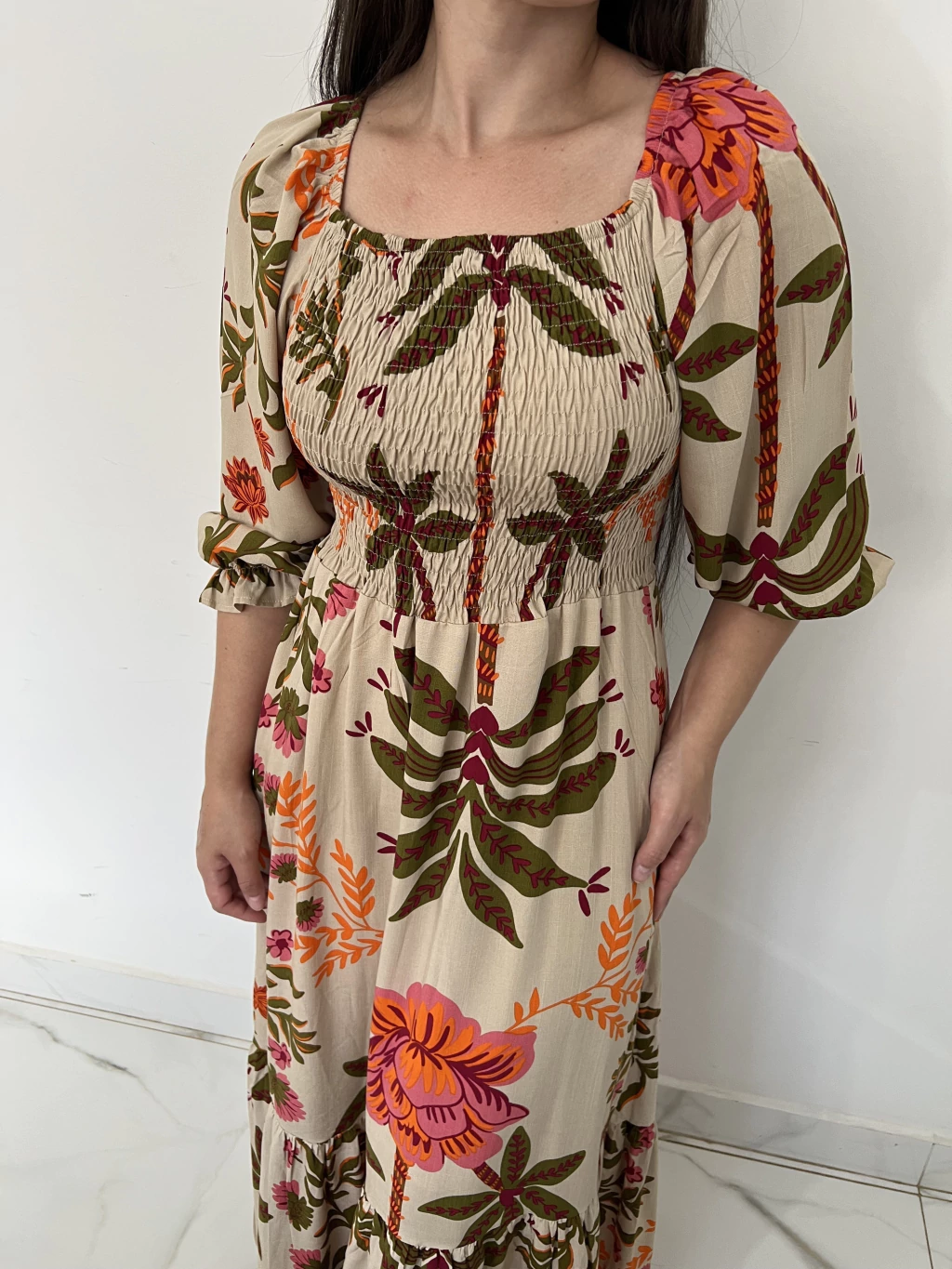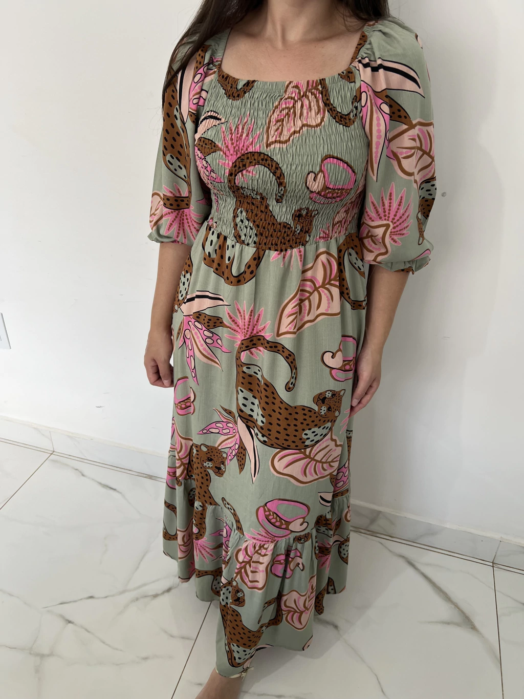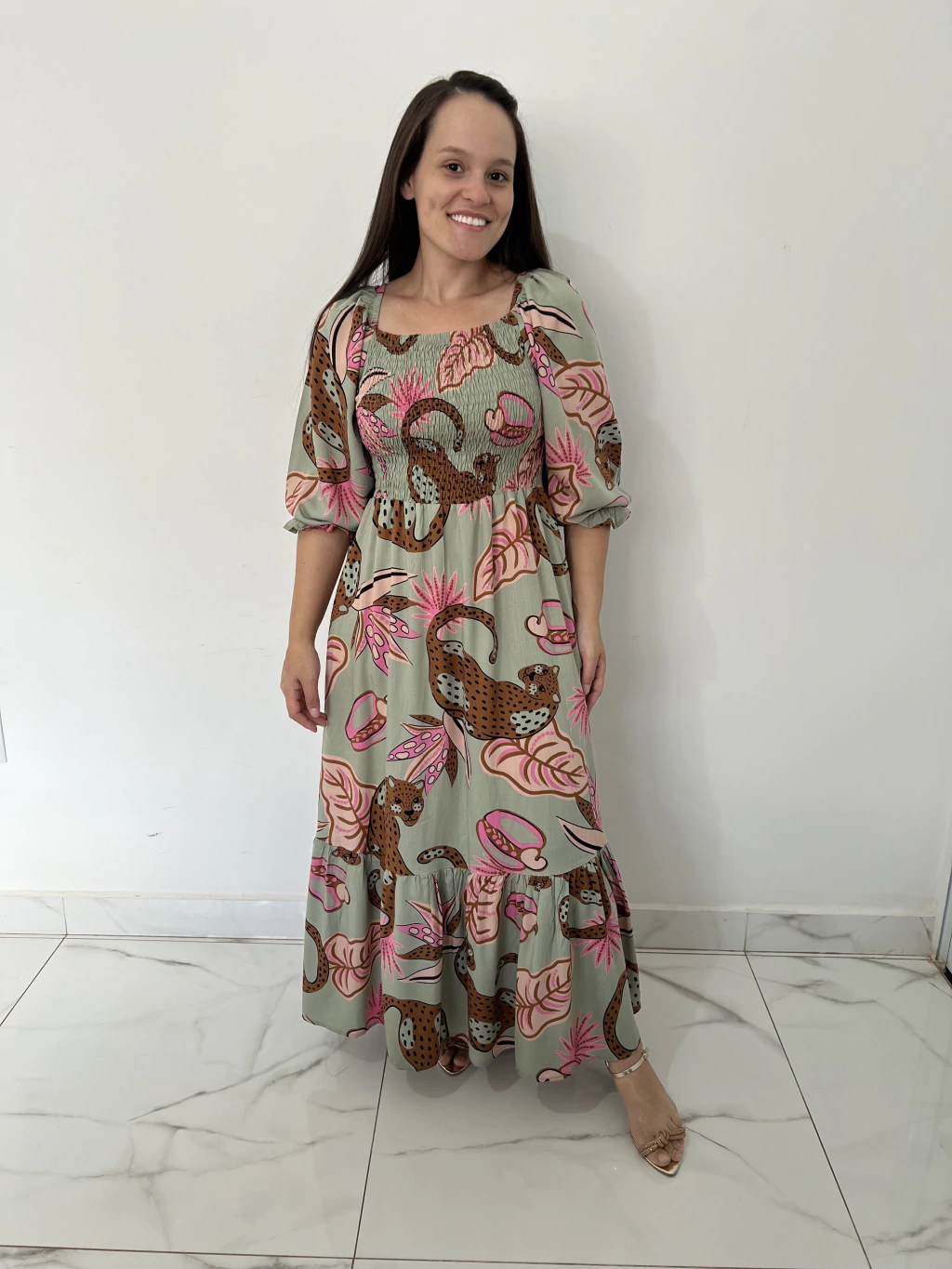 Conforto e estilo definem nosso vestido máxi midi, feito em viscolinho premium. Ele apresenta um elegante decote quadrado, mangas 7/8 com punho franzido e lastéx no corpinho para um ajuste perfeito. O recorte na cintura e o comprimento longo com babado em uma maria completam o design, garantindo um visual fluido e encantador.